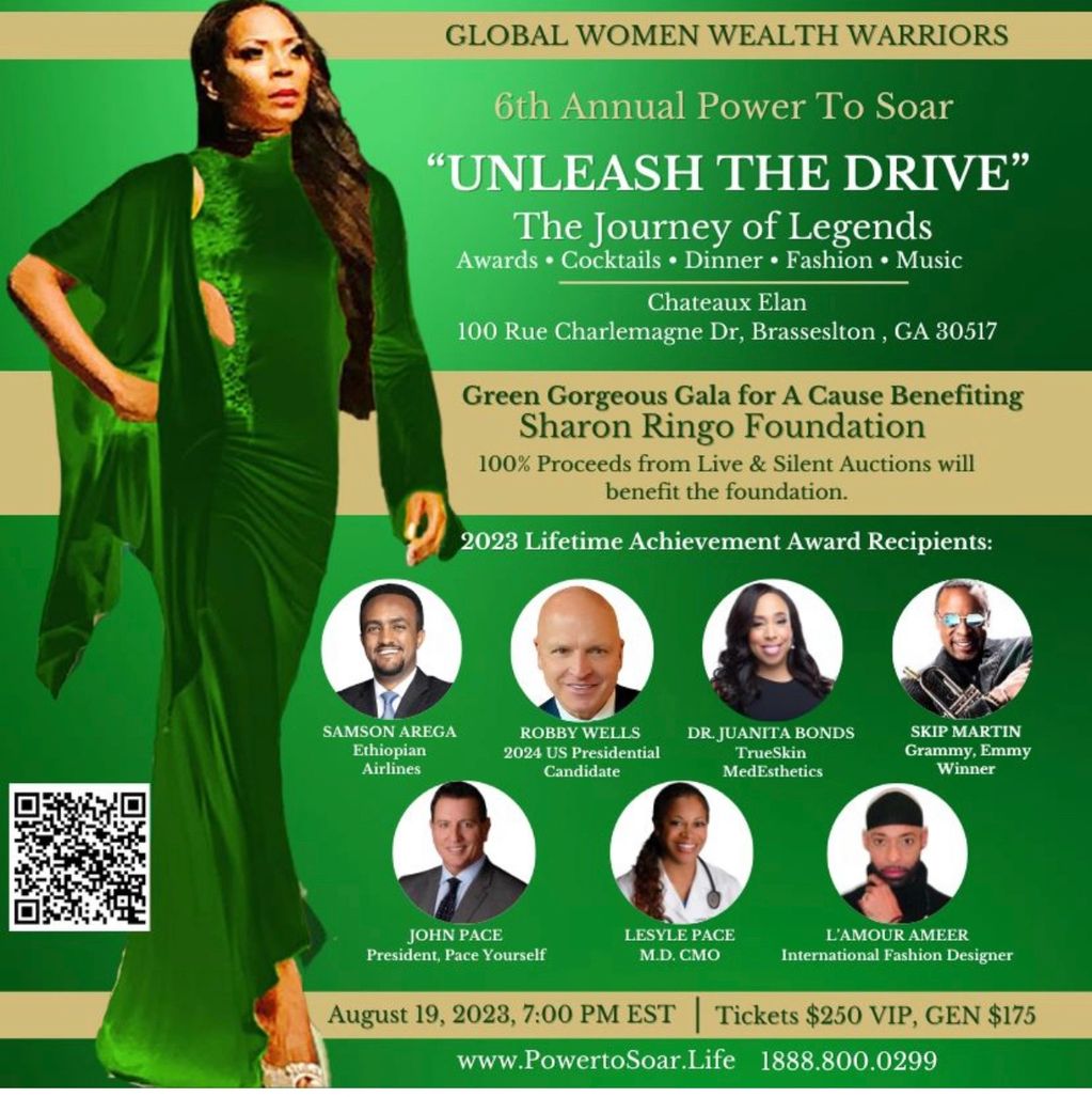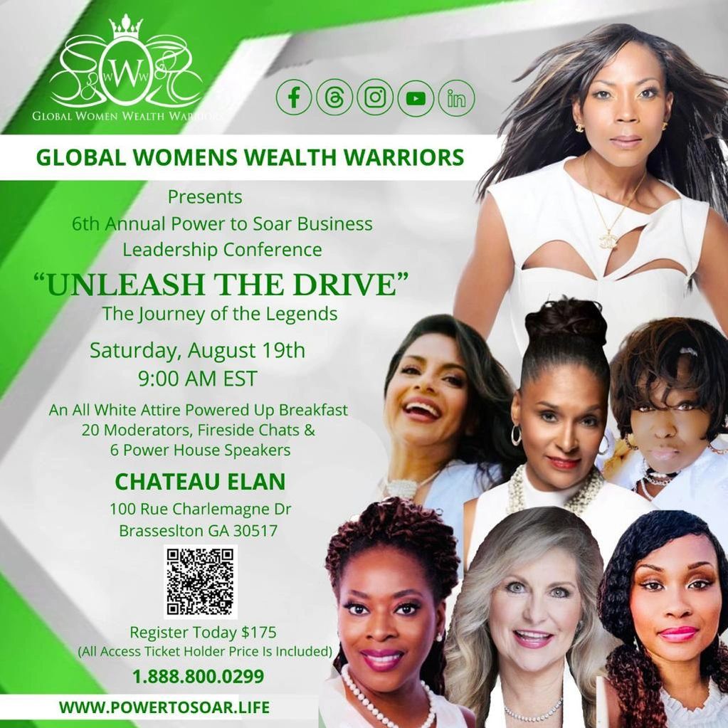 The Global Women Wealth Warriors (GW3) Global Society presents the 6th Annual Power to Soar Leadership Conference “Unleash the Drive” The Journey of Legends benefiting SharonRingoFoundation.org., August 17-20, 2023, at the award winning Chateau Elan, Winery & Resort.